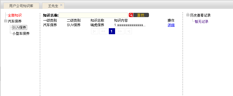 我们点击上图中间部分的【详细】,可以看到知识的详细信息。同时右侧出现了这条知识的历史查看记录。