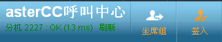 一键签入,签出所有坐席组按钮,橘黄色时为可用。两个按钮在同一个位置显示,当你签出或者未签入时,按钮显示为签入,当你签入时,按钮显示为签出。