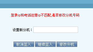 3.登录ip和电话的注册ip不匹配,询问你是否需要更改分机,或是继续签入。