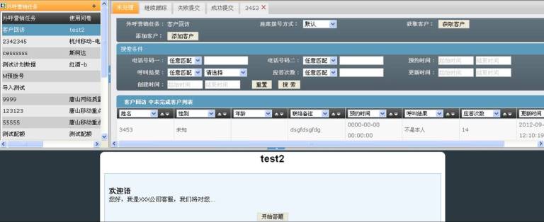 此时,系统开始自动选择一个未完成的客户进行拨号,并弹出客户资料信息页面。