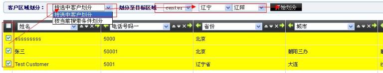 只有区域性布署的系统才可以看见区域划分功能。按选中或当前搜索条件,将客户划分至目标区域。