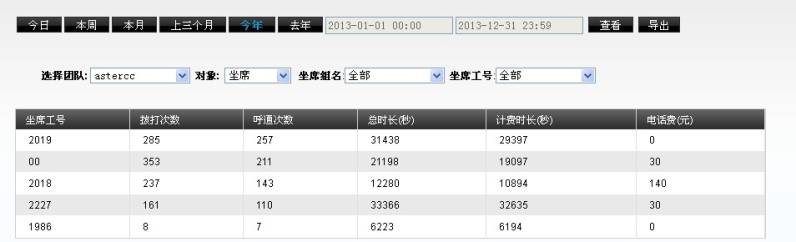 坐席工号:代表此条记录属于该坐席的统计结果。