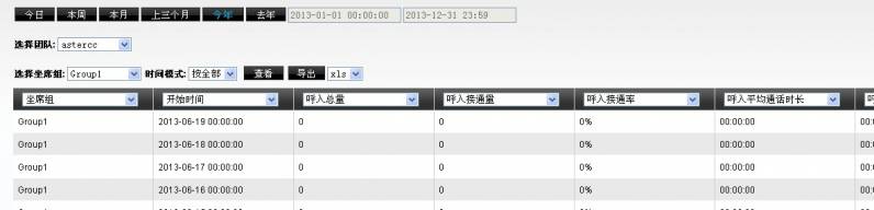 左侧列表,报表统计–>坐席组服务明细,进入下图所示页面。