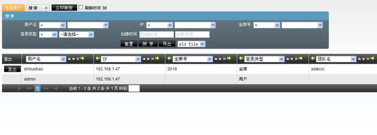 本页面上如果选中 立即刷新按钮后面的选择框,那么每30秒自动刷新一次,更新在线用户数据;点击【立即刷新】按钮,可以立即获得最新的在线用户实时信息;