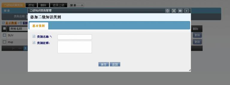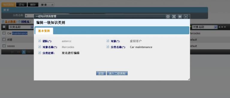 知识类别共分两级,一级类别和二级类别,这样可以使知识划分的更细致;