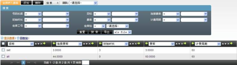 左侧管理列表,点击费率管理–>坐席呼入费率管理,进入下图所示页面。