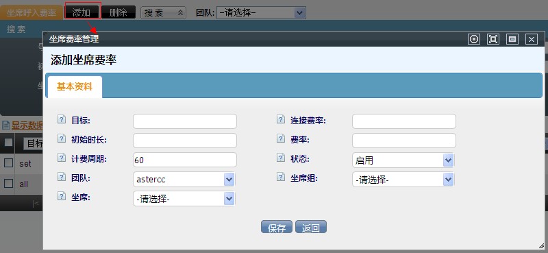 点击【添加】按钮,打开添加坐席呼入费率界面