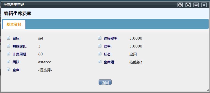 数据填写完毕后【保存】,坐席呼入费率页面会显示新增加的数据,双击该数据,可以在打开的编辑界面,对其进行数据修改。
