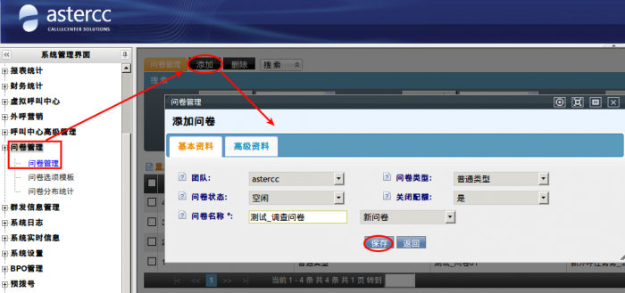 团 队:设置问卷属于哪个团队,外呼营销和虚拟呼叫中心只能选择本团队的问卷。