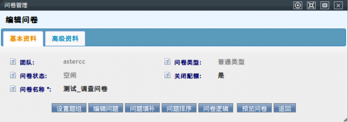 问卷名称:任意填写,用来标识问卷。