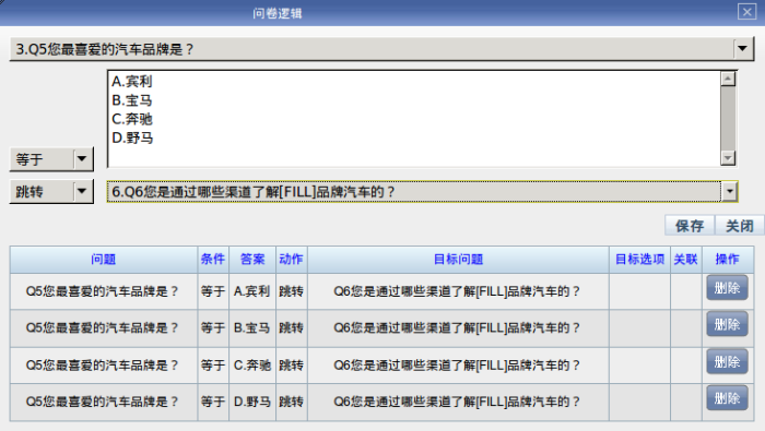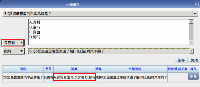假设Q5选择了“宾利”,当答Q6题时,坐席将看到:Q6.您是通过哪些渠道了解“宾利”品牌汽车?。