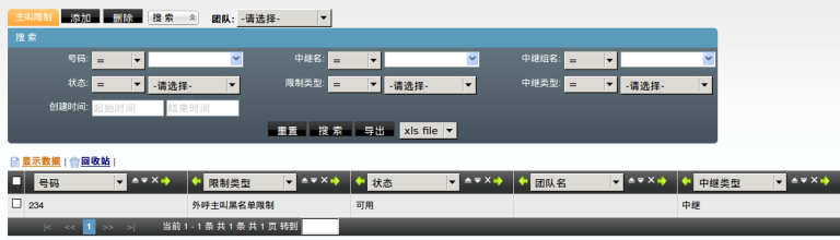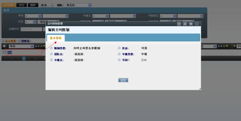 • 外呼主叫黑名单限制,那么这些号码将不能拨打此团队使用的中继线路。
