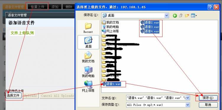 点击【批量上传】,打开上传界面,选择你录制好的语音文件(如上图)。