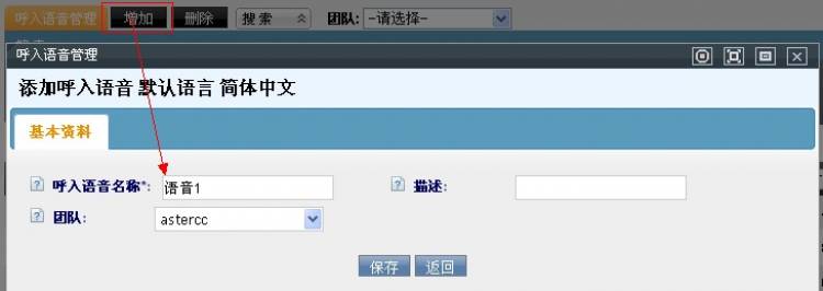 团队:指定此条数据适用于哪个团队,团队确认后,系统自动获取该团队下的语音文件和队列信息等。