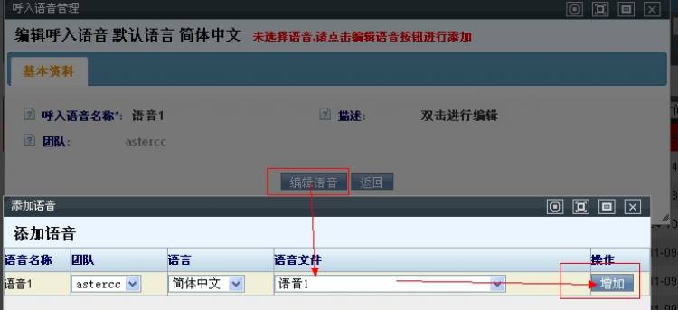 系统ivr同一个流程支持多个语言版本播报(当然你需要录制相应语种的录音),我们这里语言都选择“简体中文”。确认语音文件选择无误后,点击【增加】。