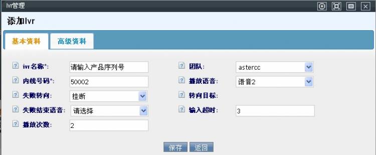 内线号码,任意填写,只要不与系统当前存在的内线号码重复即可。使用内线分机拨打此内线号码,可以测试ivr流程。