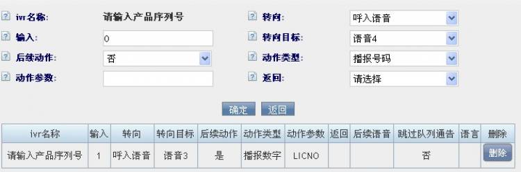 ivr名称,设置可以表达此ivr目的的词语“请输入产品序列号”;