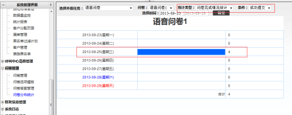 问卷详细统计可以在外呼营销/质检管理 页面进行统计