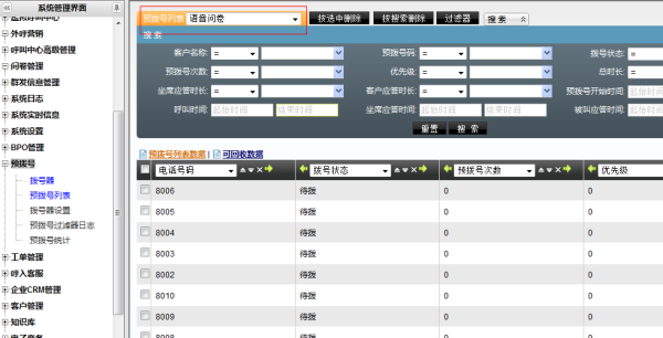 导入完毕后可以在外呼营销/客户管理中查看已导入的客户资料,在预拨号/预拨号列表页中查看已导入预拨号列表的数据。