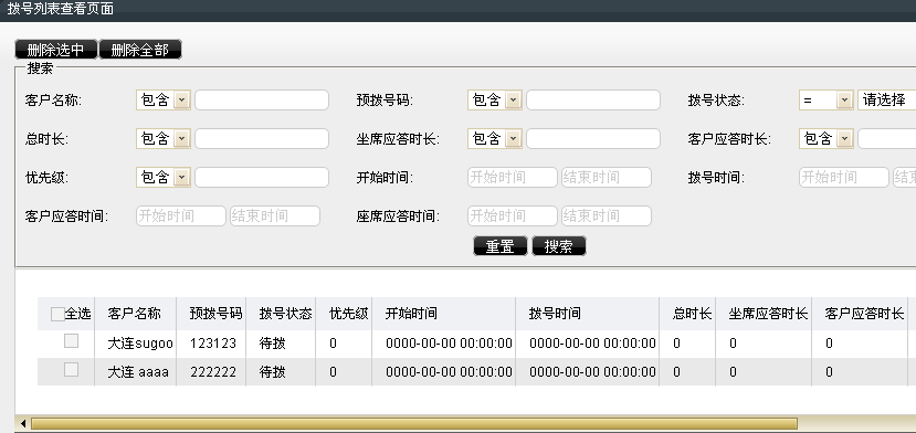 设定好条件的客户号码就会在预拨号列表当中出现,系统进行逐个拨打