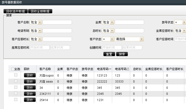 那么我们就可以通过过滤器回收指定条件的号码到拨号列表当中,如果我们回收客户名称为大连的,那么在过滤器下设定字段客户名称包含大连的,立即执行,这样我们再回到该计划下的拨号列表当中去进行查看