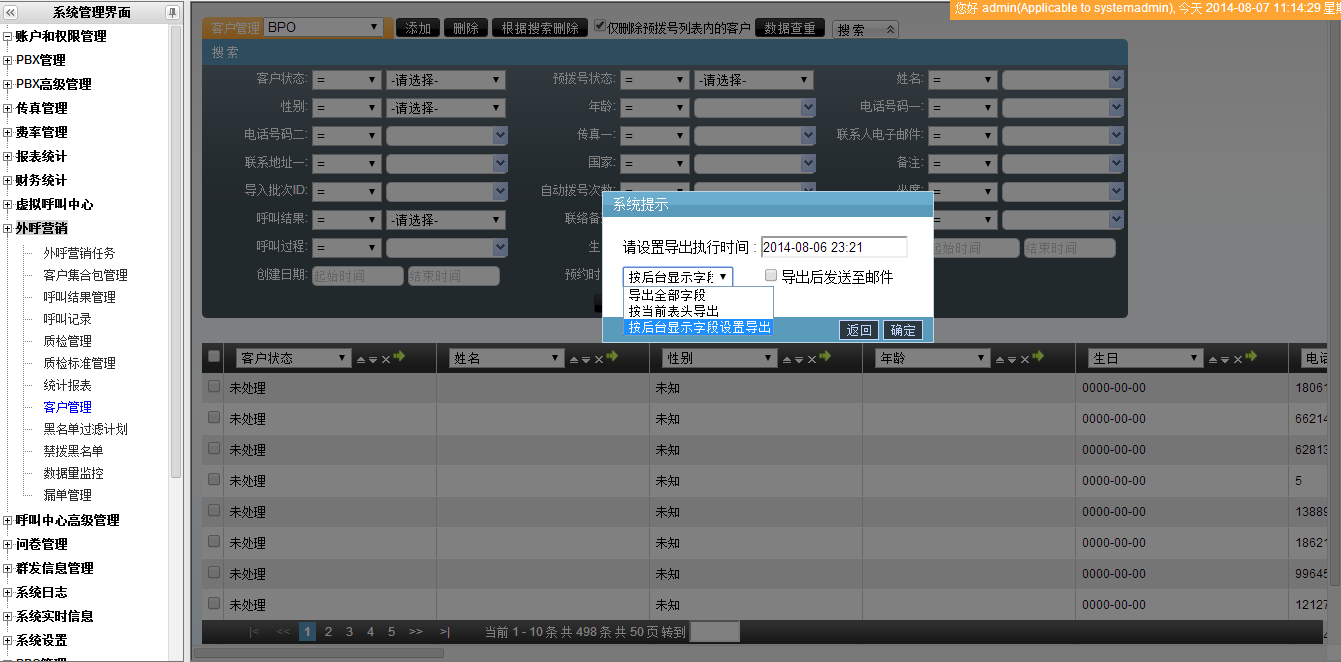 外呼营销任务中字段的控制