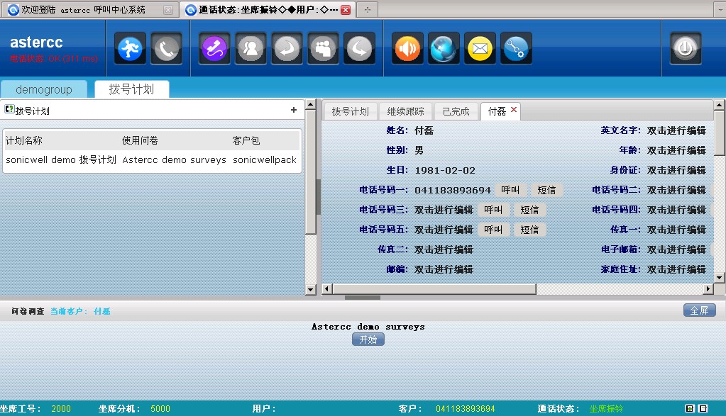 某电话问卷调查公司的astercc应用实例